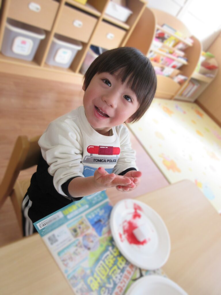 ・・・と思ったら、「手についちゃった~!!」と大はしゃぎ^^💛