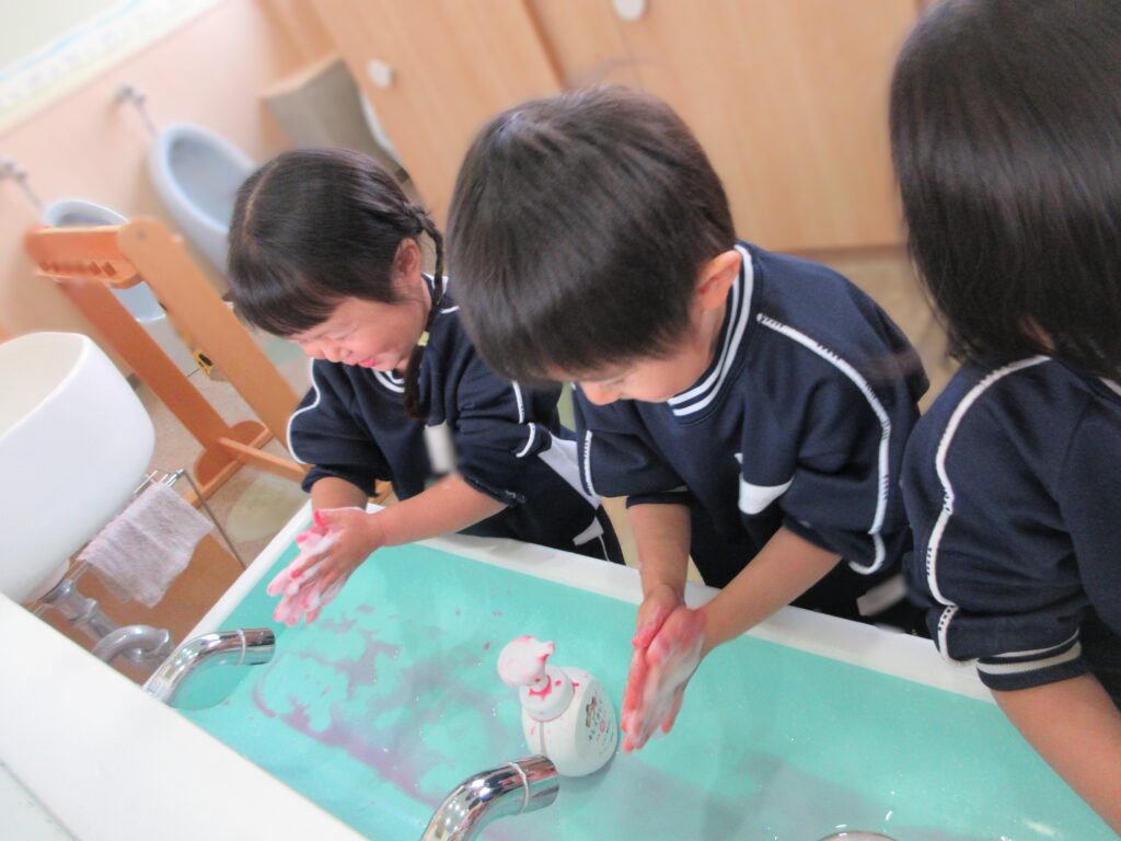 手を洗う時まで楽しそうなみんなでした♡