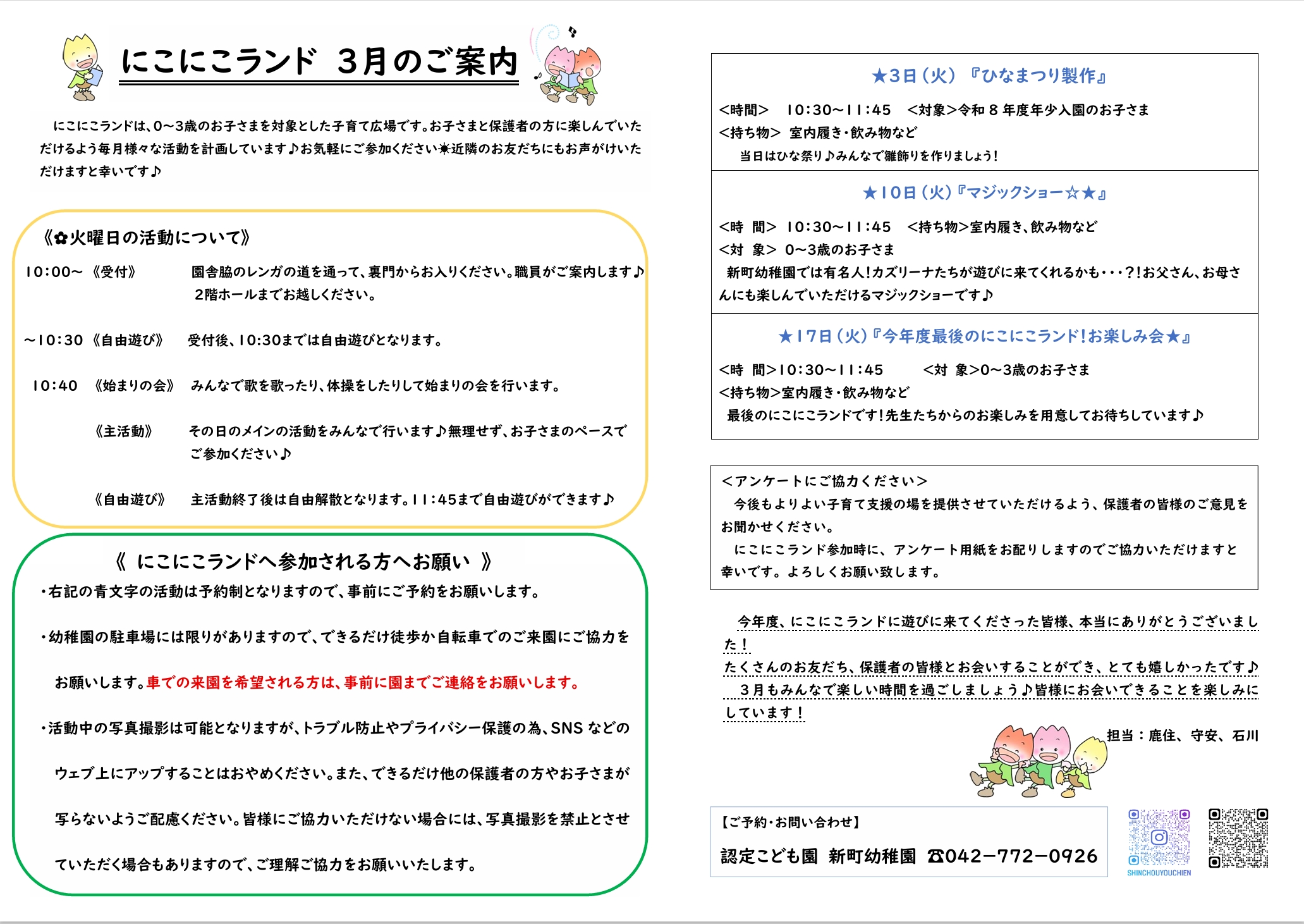 にこにこランド3月のご案内🌸